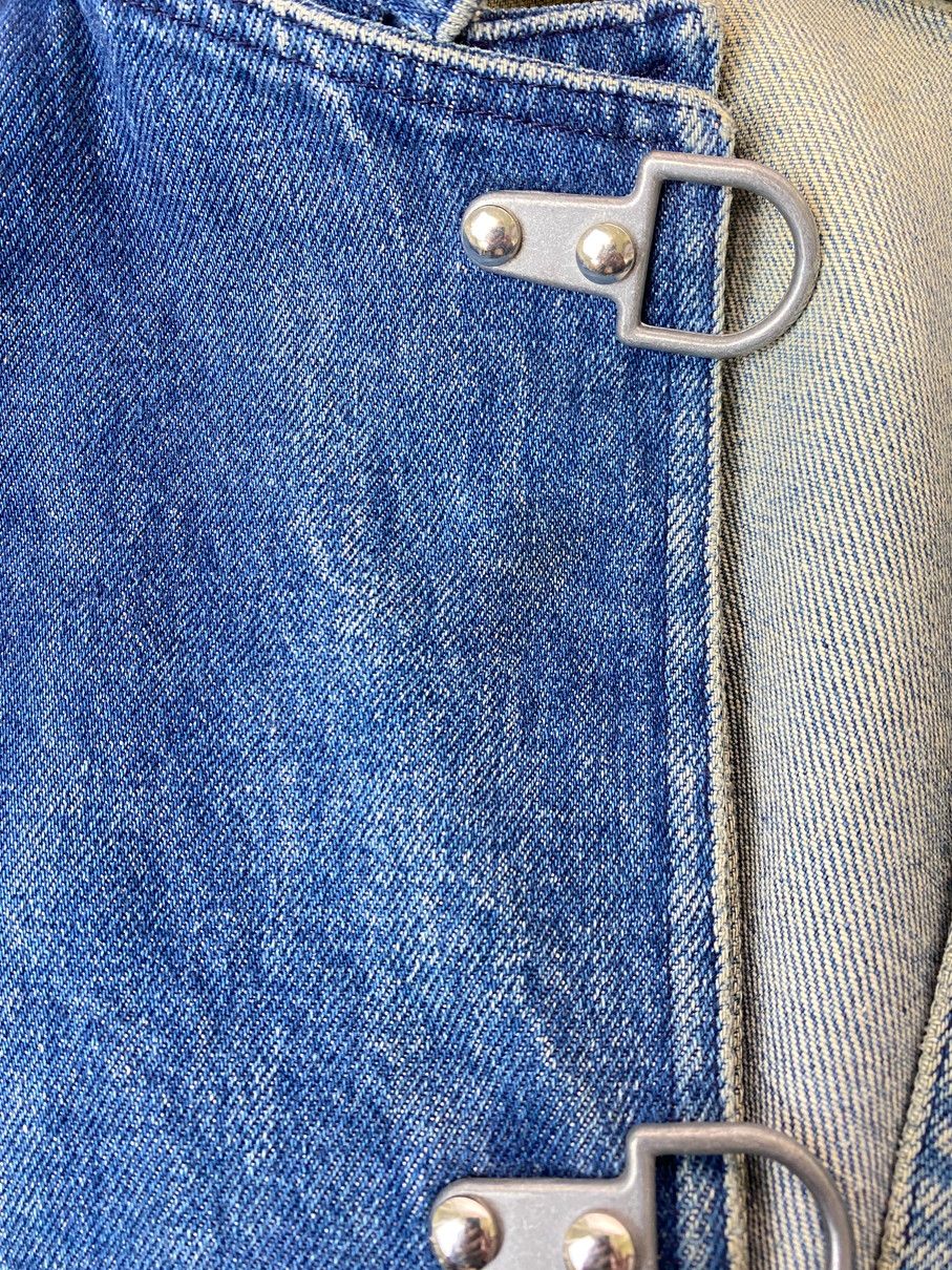 着用感があり、ほつれ、スレ、すり切れ、ヤケ、全体に汚れ、第一バックルパーツ破損、第二バックル右ポケットのスナップ破損、ポケット上蓋角に穴等がございます。