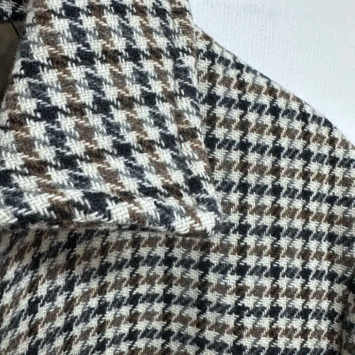 高級感のあるハウンドトゥース チェック パターンが際立ちます。クラシックなデザインで長く着られそうです。