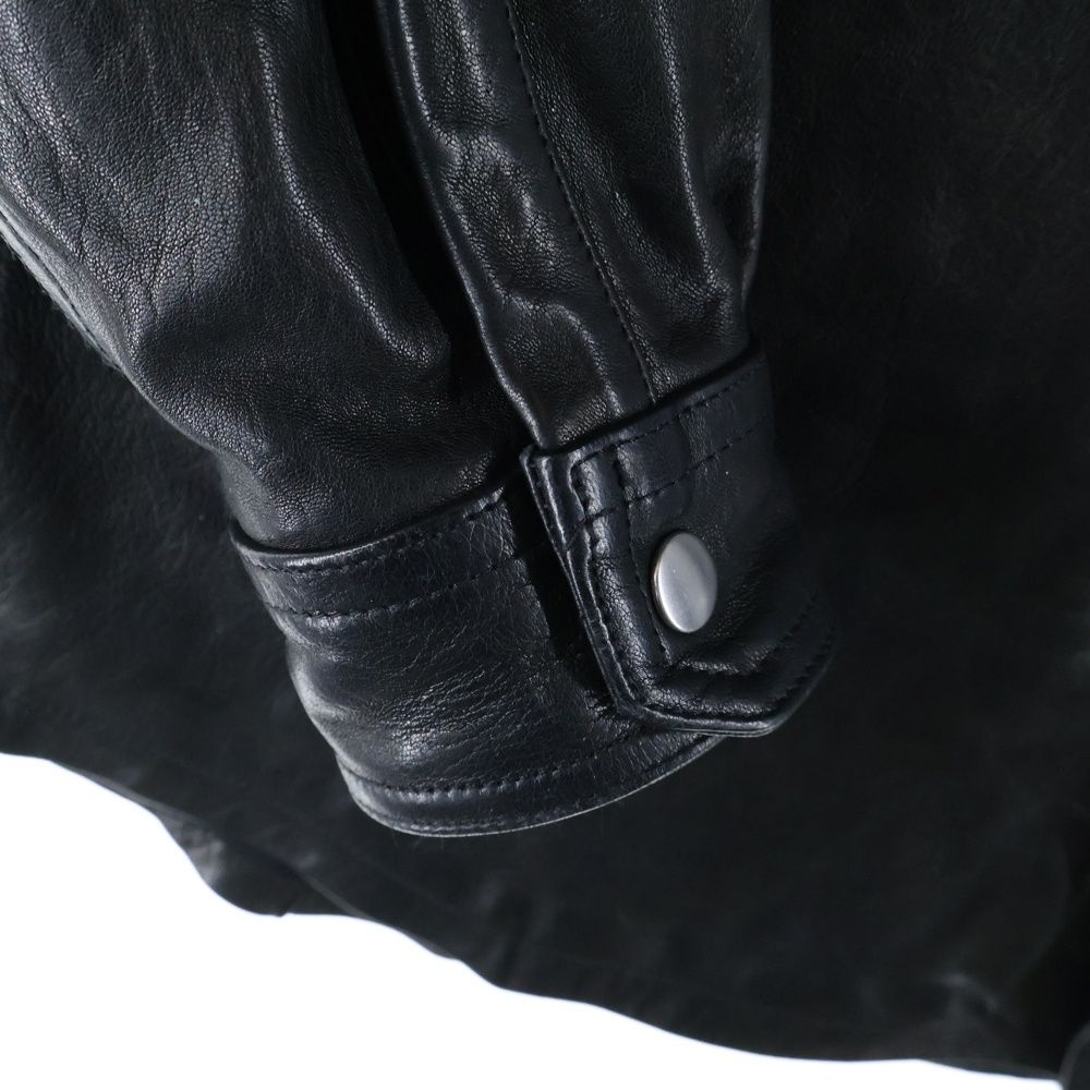 【品名】Button-fastening flap-pocket shirt ラムレザー フロントポケット スナップボタン シャツ ジャケット ブラック RU02E1744LNV