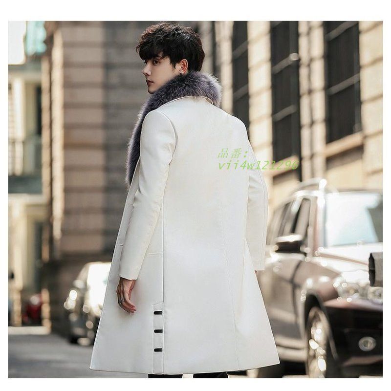 秋冬 ロング丈コート レザーコート 二つボタン ライダース PU フェイクファー付き メンズ 革 中綿 アウター vii 4 w 121296