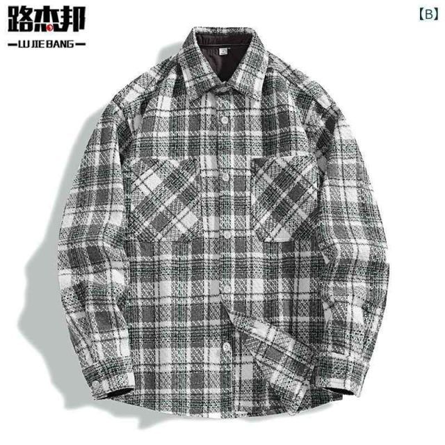 3 XL 秋冬 コーデ メンズ 服 シンプル ファッション オシャレ 大人 かっこいい 大きいサイズ ストリート 紳士服 ヘビー チェック柄 シャツ ジャケット アウター アメリカン レトロ