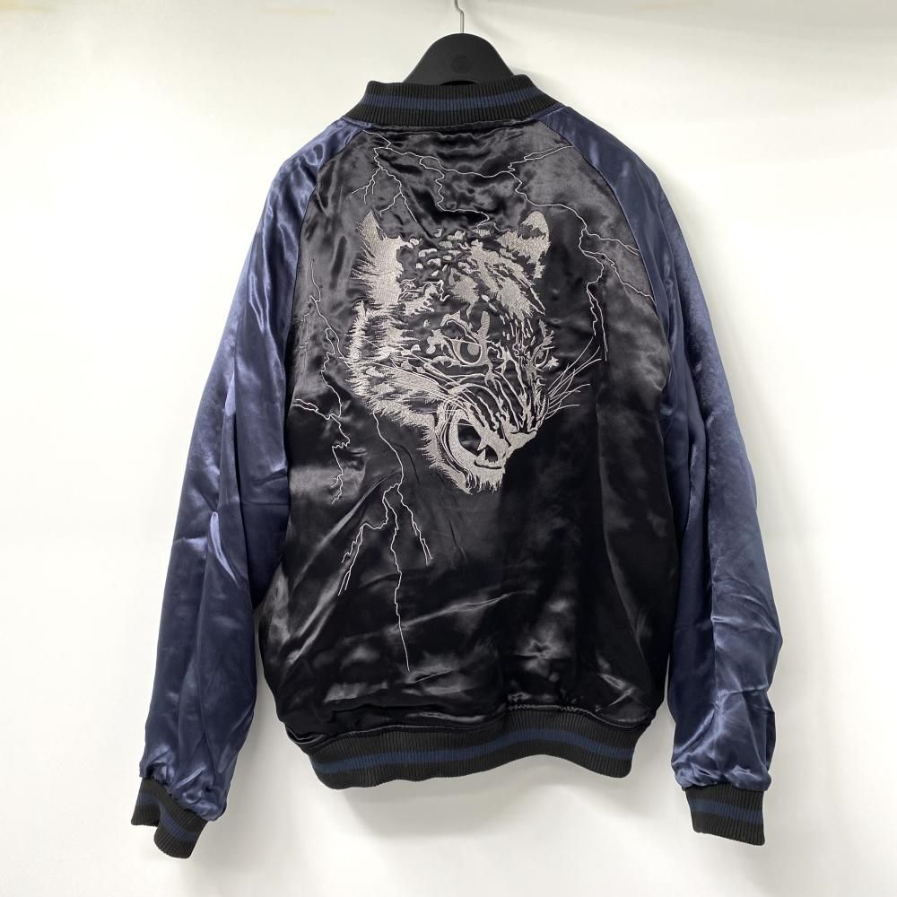 絡操魂 雪豹×桜牡丹 リバーシブルスカジャン ネイビー/ブラック サイズM からくりだましい