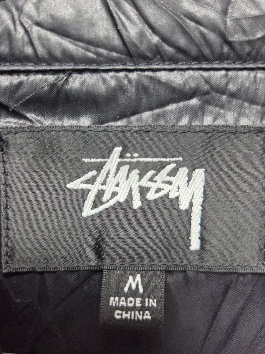 STUSSY ビーチ シェル リンクル ナイロン ブラック カラー M サイズです。リンクル加工されたナイロン素材で独特な質感が際立ちます。フードが付いており、背面にSTUSSY ロゴ プリンティングがあります。サイズは少しオーバーサイズです。