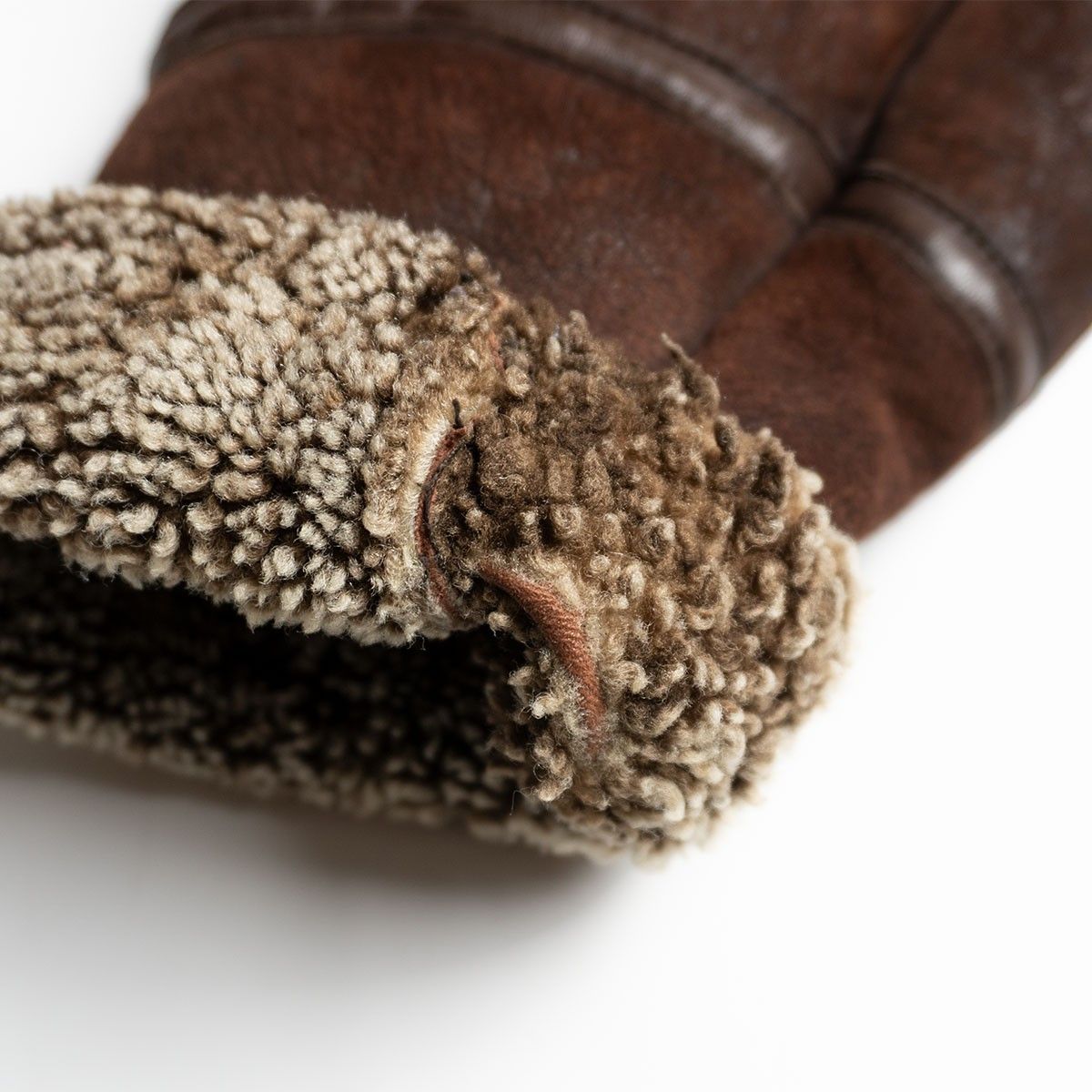ボディには肉厚ながらモチっとした弾力性を持つ上質のシープスキン(羊革)が使用されております。裏地にはふかふかのムートンボアが敷き詰められ最高の着心地・防寒性を誇ります。