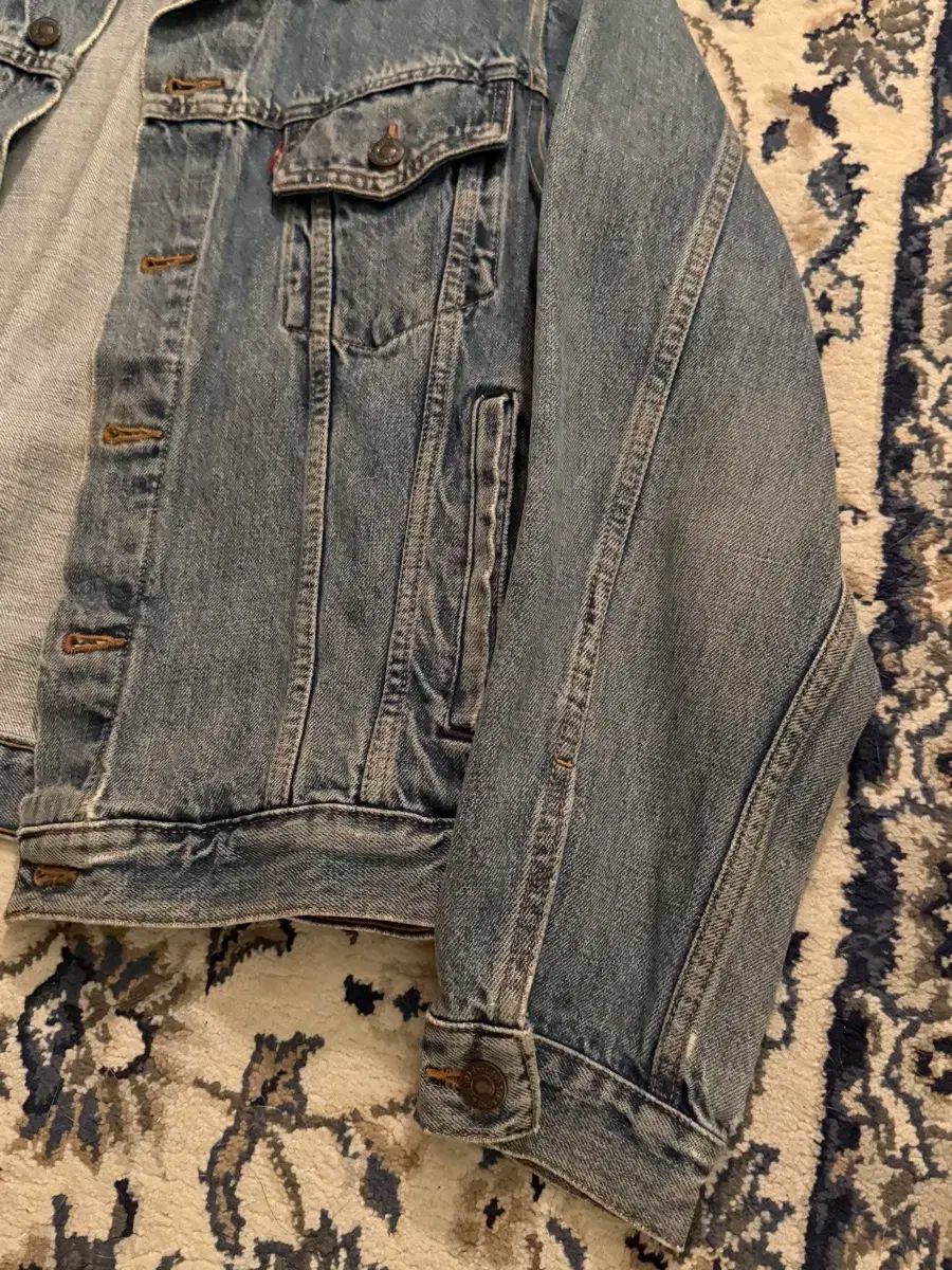 リーバイス 70506 デニム ジャケットです。ライトブルー カラーにスタンダードなフィットで流行り廃りなく長く着られます。サイズは100で、実寸 コメントは 번톡 ください!コメントなければすぐ安全決済してくださって結構です!