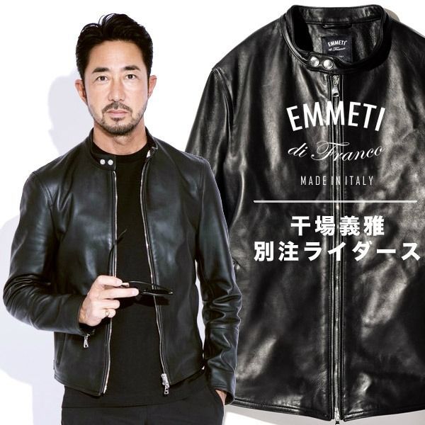 干場コラボ EMMETI エンメティ JURI NAPPA CERATA ユリ ナッパ チェラータ シングルライダースジャケット 46