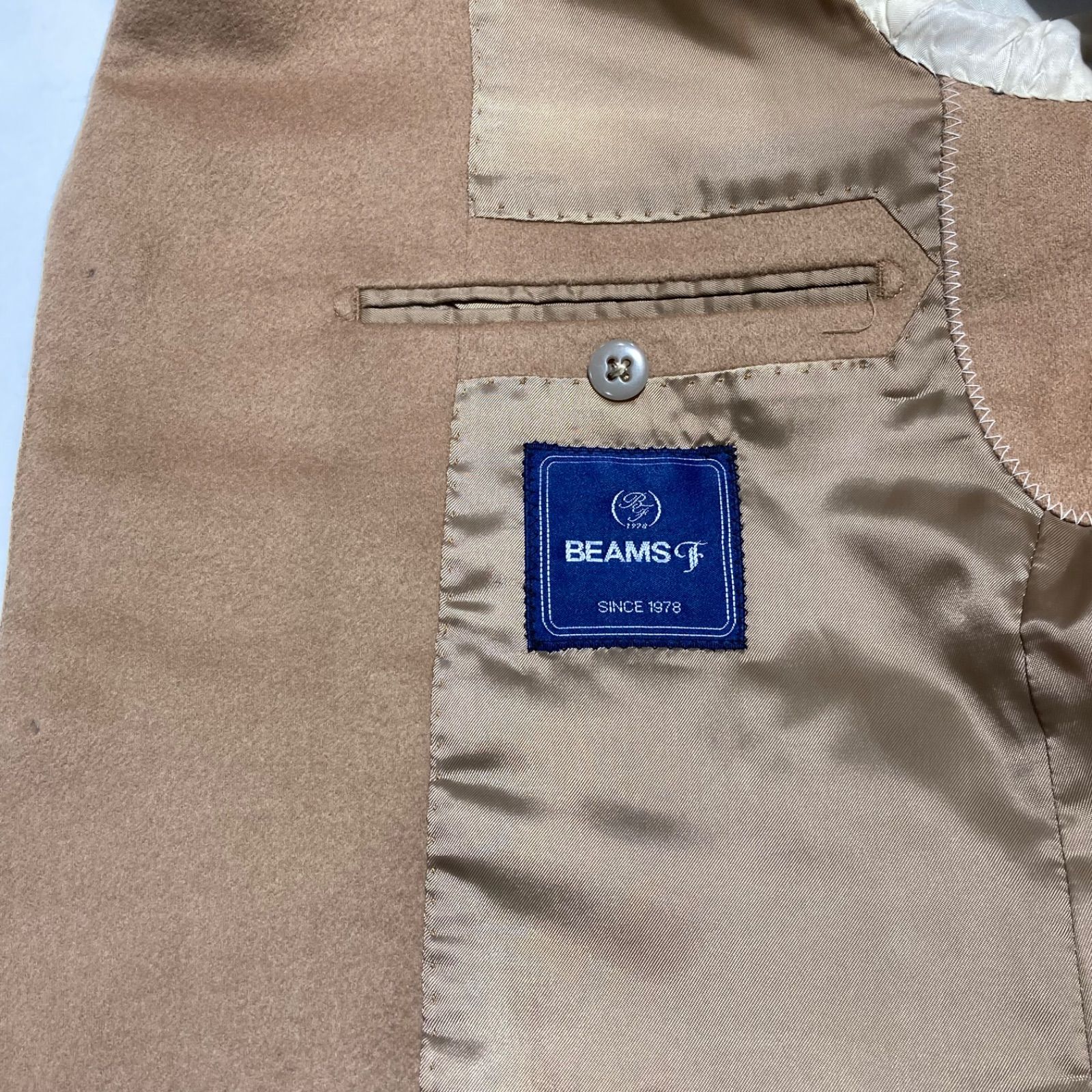 BEAMS F ビームスエフ リングヂャケット製 カシミヤ テーラードジャケット キャメル サイズ90 3つボタン シングル 総裏地 袖口本切羽 裏地シミ有 メンズ 冬 ゴーゴー古 1926 Y