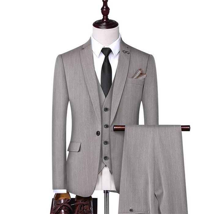 スリーピーススーツ ビジネススーツ 3ピース スーツセット 3点セット ストライプ柄 メンズスーツ セットアップ 細身 紳士服 結婚式 入学式