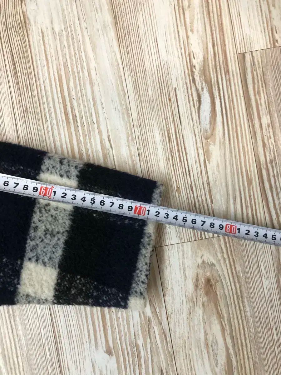 ブラック アンド 白 톤의 CHECK ロングコート です。実寸 サイズ は 写真に 見える 줄자로 確認 お願いします。
