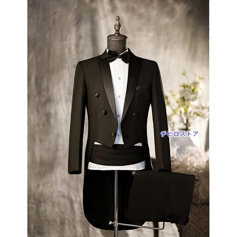 タキシード メンズ スーツ フォーマル 結婚式 燕尾服 演奏会 舞台 紳士服 男性 ビジネス メンズスーツ リボン付き ステージ