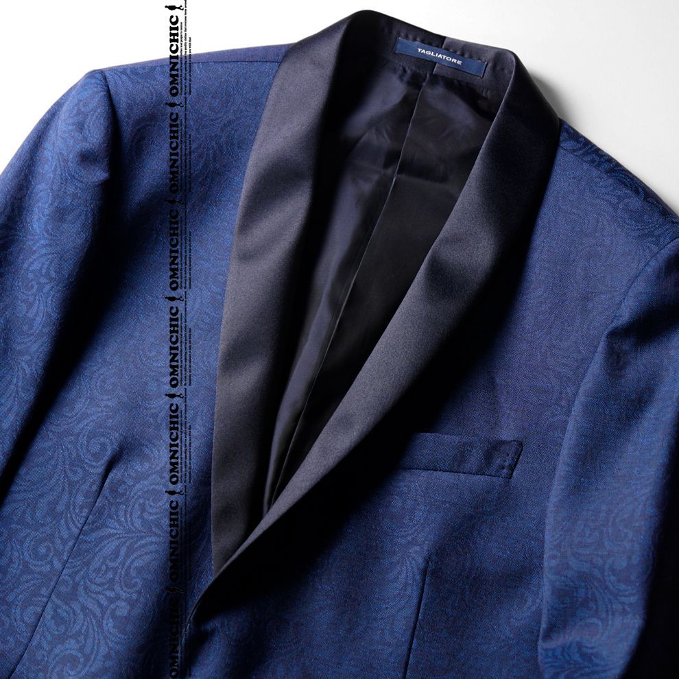 感抜群の ジャガード柄 24春夏 タリアトーレ 色気漂う ドレッシ―モデル 上 ネイビー ウール スモーキング ジャケット 52
