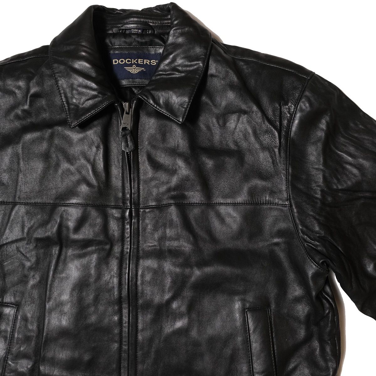90 s 00 ドッカーズ ラムレザー ジャケット 黒 ブラック スイングトップ レザージャケット 90年代 旧タグ DOCKERS アメリカ古着 ビンテージ ヴィンテージ