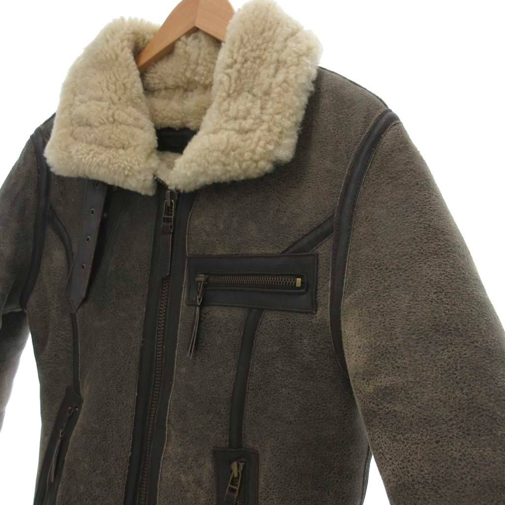 Liugoo Leather B-3 フライトジャケット ムートン レザー 羊革 裏ボア S ブラウン UO