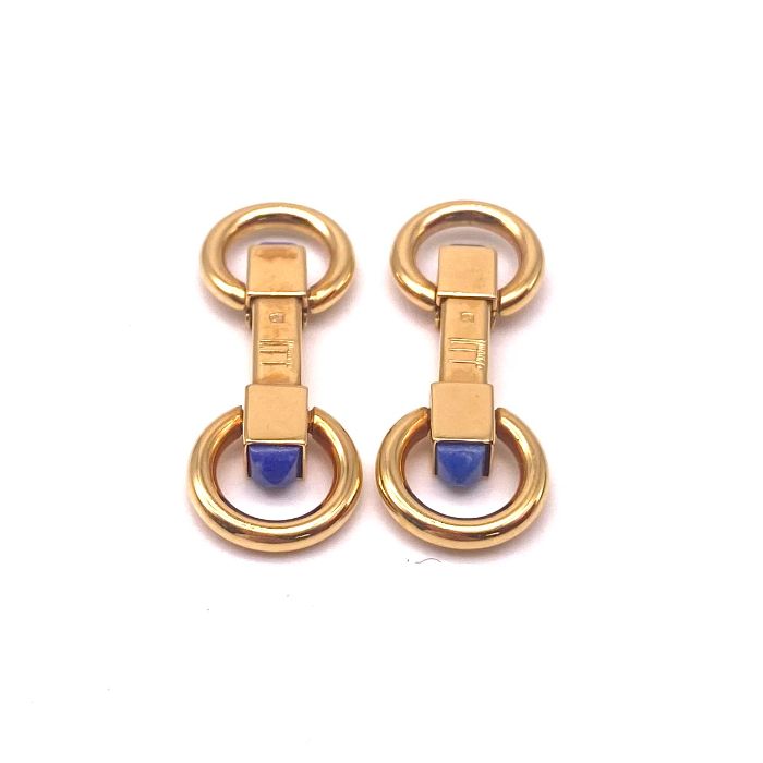 Dunhill ダンヒル ロゴ ロングシェイプ ブルー ストーン ゴールド カフス eY 0811 A