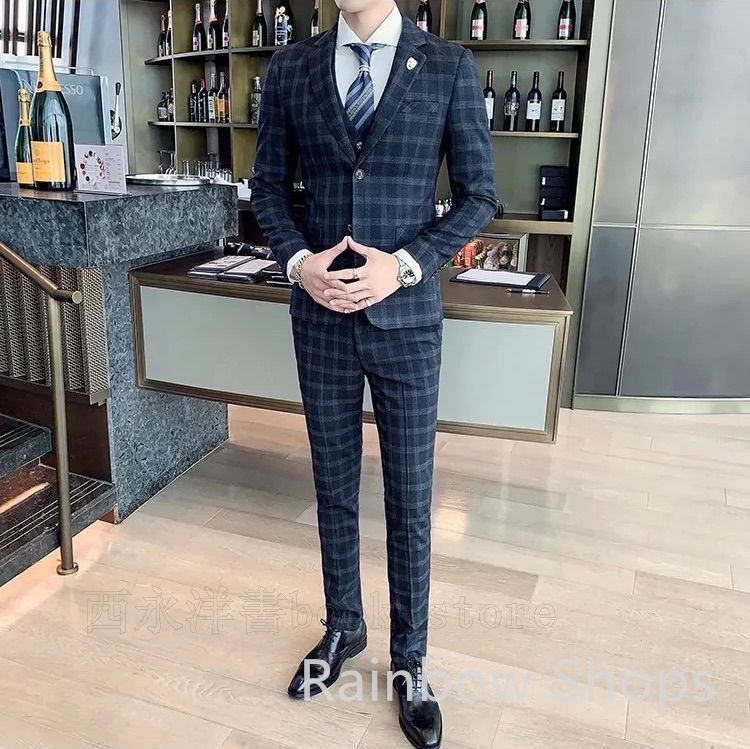 スーツ ビジネススーツ メンズ 3点セット 上下 チェック柄 ドレススーツ スリーピース ビジネス 小さい 大きい 大きめ s m 春 夏 秋 冬 インナー ウエスト調整 上着 おしゃれ 大きいサイズ
