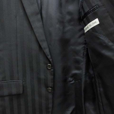 【商品名】ジョンローレンスサリバン JOHN LAWRENCE SULLIVAN スーツ 上下セット ブロックストライプ 2B ジャケット パンツ ウール シルク 黒 ブラック 38