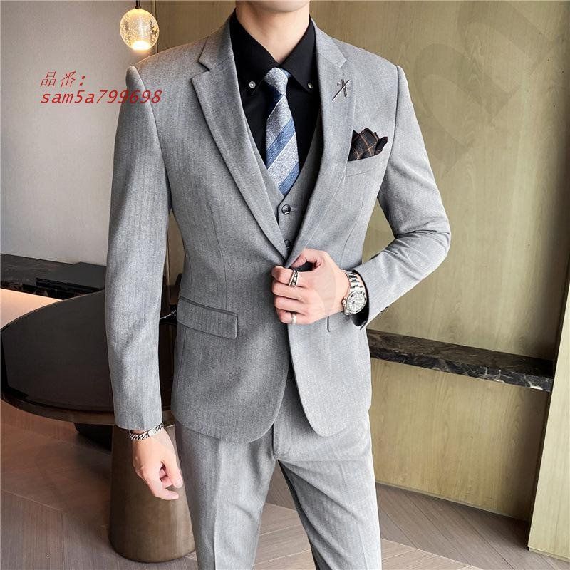 メンズ シングルスーツ 3点セット スーツセット 無地 一つボタン スリム パーティー パンツ ビジネス ジャケット フォーマル 結婚式 ベスト 秋冬 紳士服 am 5 a 799698