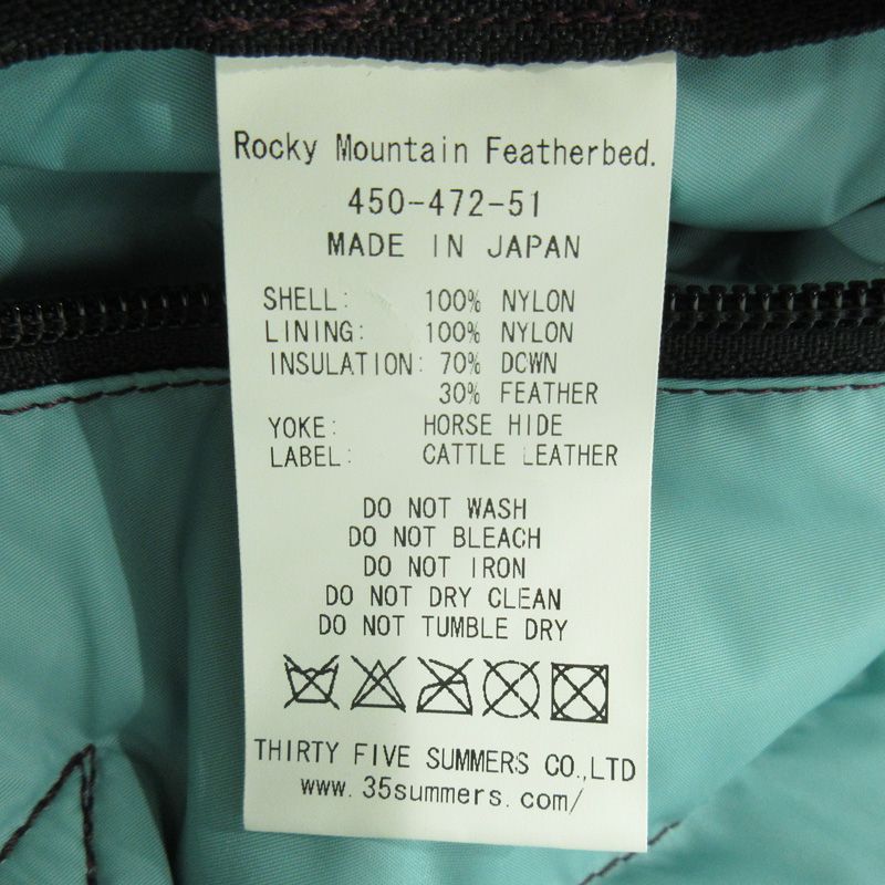 Rocky Mountain FeatherBed ロッキーマウンテンフェザーベッド × ウエアハウス NYLON DOWN VEST ホースハイド切替ダウンベスト パープル サイズ 36 93