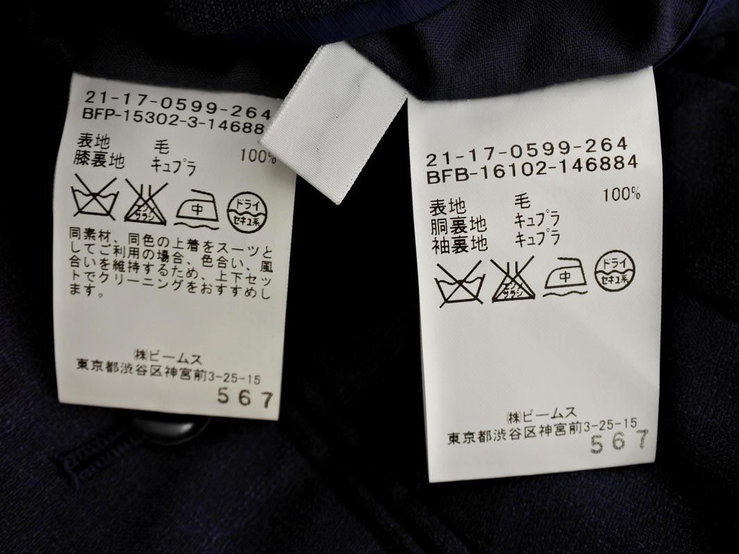 BEAMS F ビームスF チェック セットアップ ジャケット パンツ スーツ size 42 濃紺 メンズ