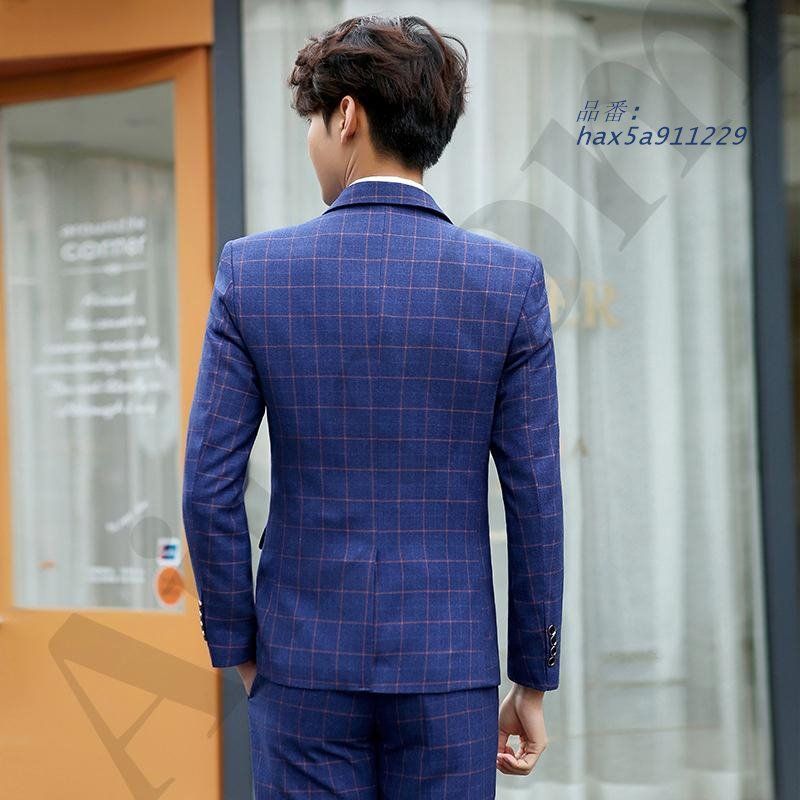スリーピース スーツ メンズ ビジネススーツ セットアップ 結婚式 通勤 細身 カジュアルスーツ スーツセットアップ チェック 3点セット ベスト hax 5 a 911229