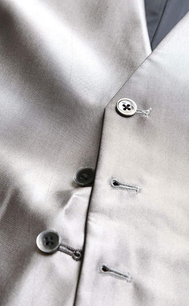 上品な質感があるフォーマルベストです。結婚式、パーティー、二次会などのフォーマルシーンに最適な一枚。コートやスーツなどとのコーディネイトに相性抜群。モノトーン色のブラックはもちろん他のカラーとも馴染みます。そして2WAY仕様のリバーシブルなのでコーディネイトの幅が広がります。ボタンは表地と同系色ボタン。ポケットは左右に2つ、背中側はウエストサイズアジャストのできるのでしっかりとフィットした着心地に。