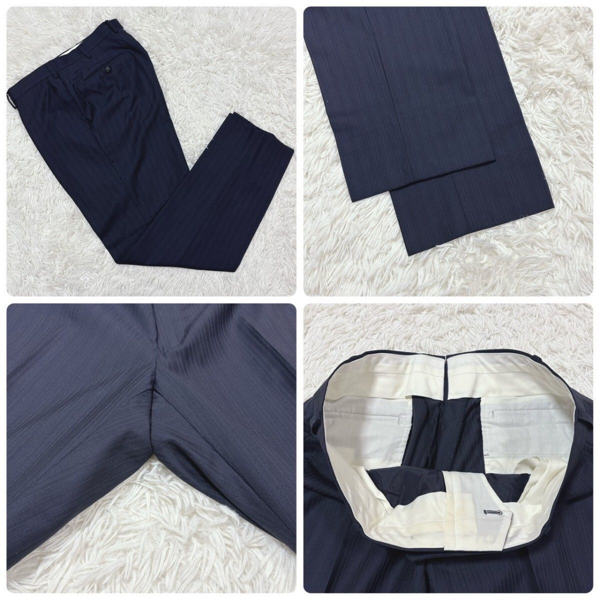 上品なネイビーのシャドーストライプ柄が洗練された印象を与え、