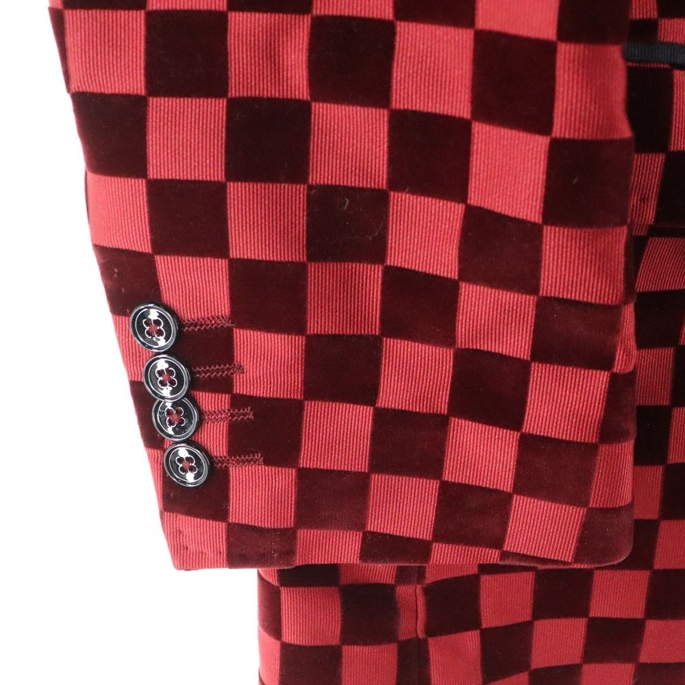 【品名】ベロア ブロックチェック 1B テーラードジャケット レッド G2966T