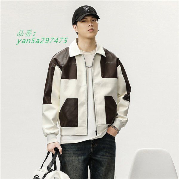 ライダースジャケット メンズ 配色切替え バイクジャケット PUレザージャケット 立ち襟 秋 ライダース カップル スリム 男女ペア 秋服 フェイクレザー yan 5 a 297475