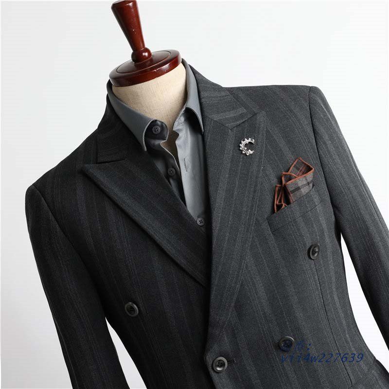 メンズ スーツ 2つボタン ストライプ ビジネススーツ SUIT 細身 スリムスーツ フォーマルスーツ 紳士服 二次会 結婚式 卒業式 入学式 面接 通勤着心地良い 礼服 結婚式 オールシーズン対応 パーティー カジュアルスーツ おしゃれ 春 秋 上下セット グレー