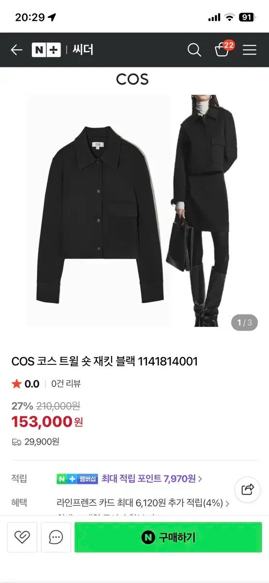 COS ツイル ショート ジャケット ブラック Lサイズ
