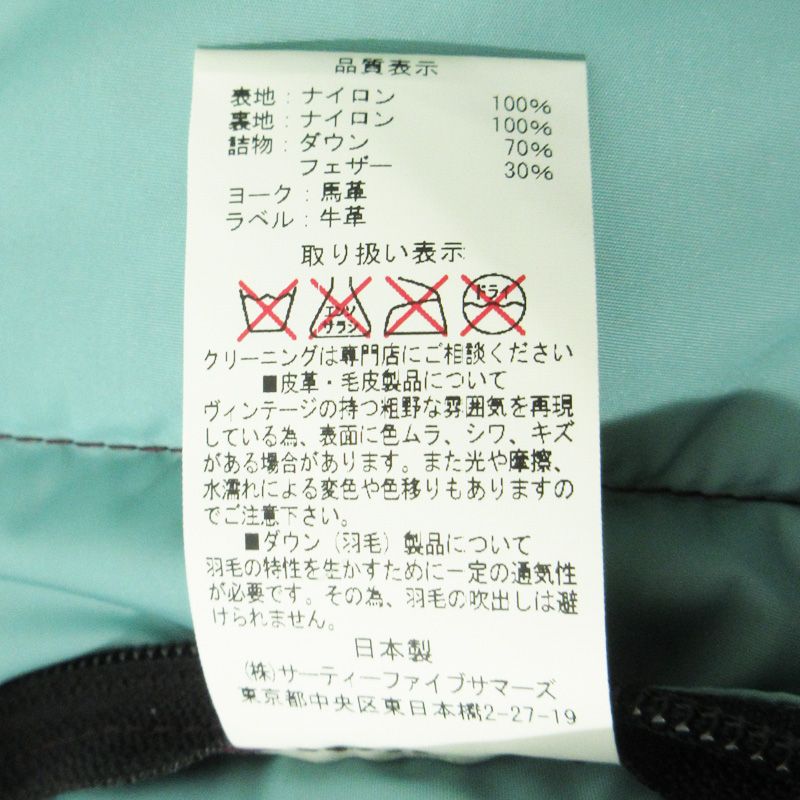 Rocky Mountain FeatherBed ロッキーマウンテンフェザーベッド × ウエアハウス NYLON DOWN VEST ホースハイド切替ダウンベスト パープル サイズ 36 93