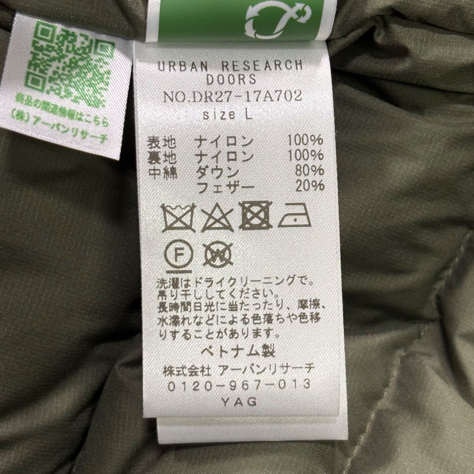 NANGA × URBAN RESEARCH DOORS インナーダウンジャケット オリーブ L ナンガ アーバンリサーチ