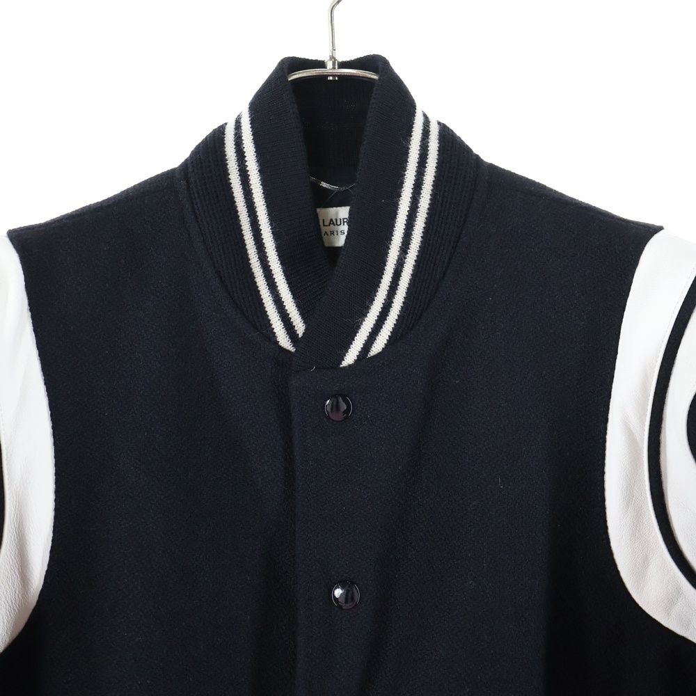 SAINT LAURENT PARIS サンローランパリ TEDDY JACKET テディジャケット レザートリムウールスタジアムジャンパー 354718 Y 180 W ブラック