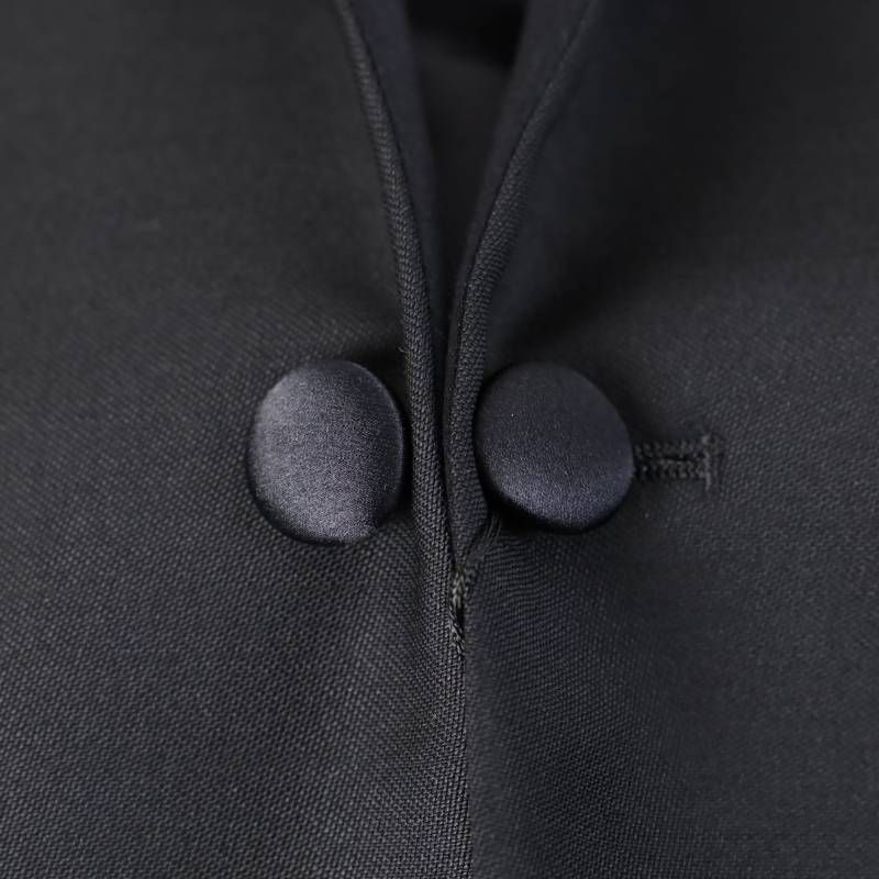 本切羽袖、ピークドラペル(拝絹)、1拝みボタン。