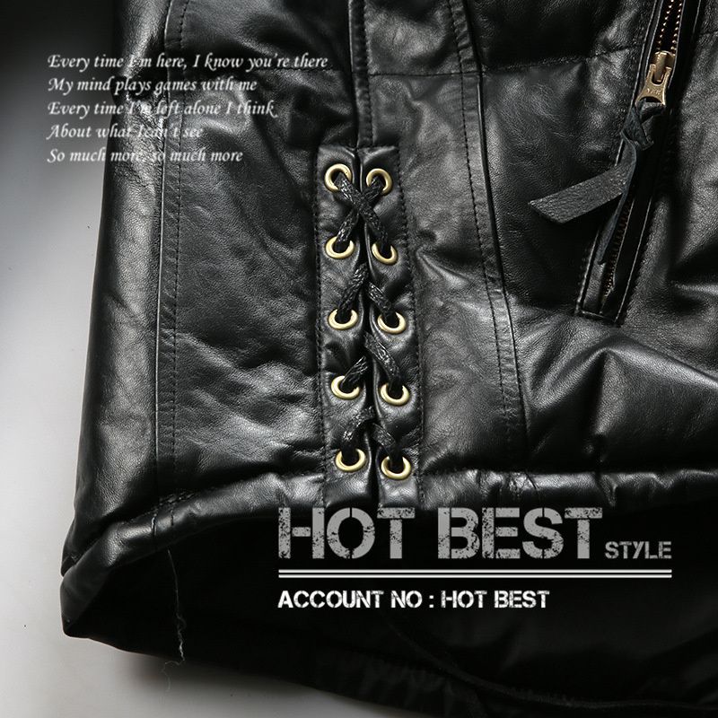 表地にホースハイド(馬革)とシープスキン(羊革)を組み合わせた、上質なシングルライダーススタイルのダウンジャケットです。