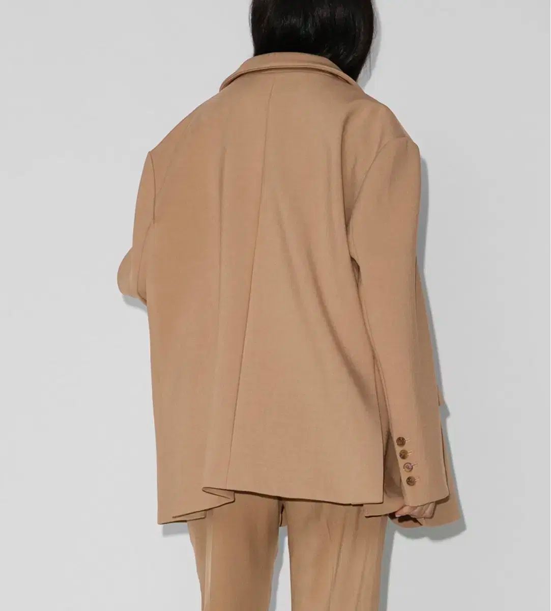 ザ・フランキー・ショップのcignature(シグネチャー)商品として出てくるブレーザーの一つで、かわいいキャメル色で、レディース・メンズどちらもオーバーサイズで着られる商品です。下部のフラップポケットとバストポケットで収納が容易で、オーバーでありながら前 단이 더 ルー(LU)ド하게落ち、後ろは両側が重なったスリットでオーバーな、少しAラインフィットでユニークに仕上がっています。