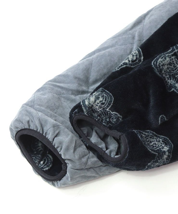 片面はシンプルで上品なキルト、もう片面は総柄ボアでガラッと雰囲気チェンジ。