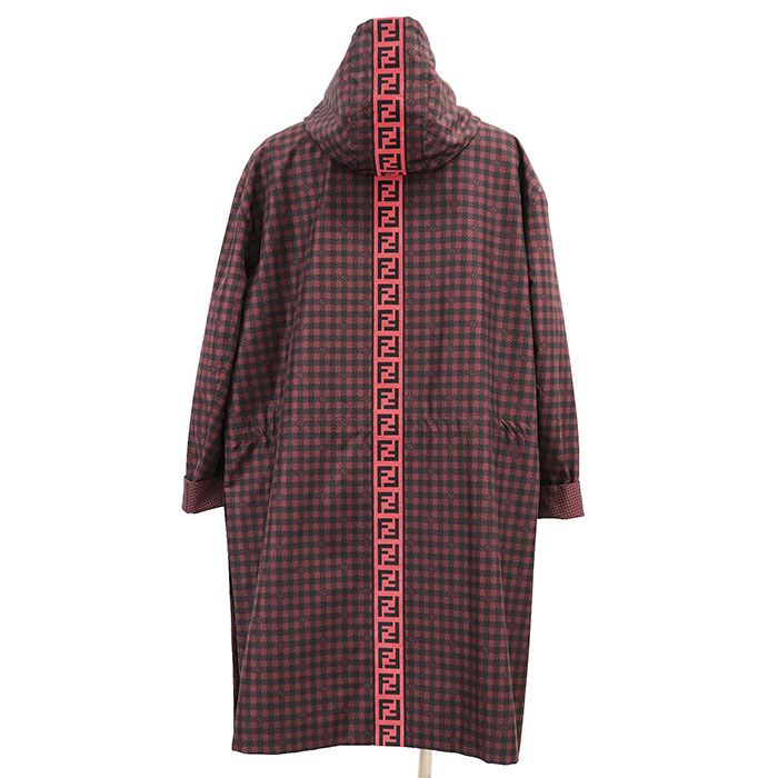 【シリーズ】FENDI フェンディ コート リバーシブル ナイロン 2022年製 FF ロゴ ズッカ 千鳥格子柄 レイン ボタン付 メンズ 48 赤 黒 伊製