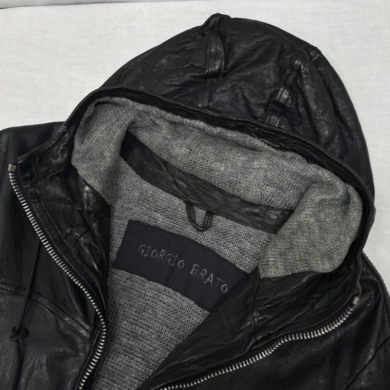 ジョルジオブラット シープスキン 羊革 スタンド ジップアップ レザー ジャケット パーカー 裏リネン メンズ 44 ISItems 古着