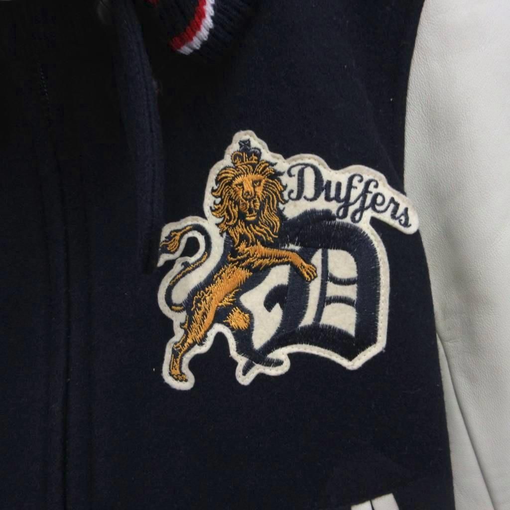 ザ ダファー オブ セントジョージ The DUFFER of ST.GEORGE スタジャン ブルゾン レザー切替 羊革 ワッペン ダブルジップ S 紺 ネイビー アイボリー DF-Q 9-33100 MET 2