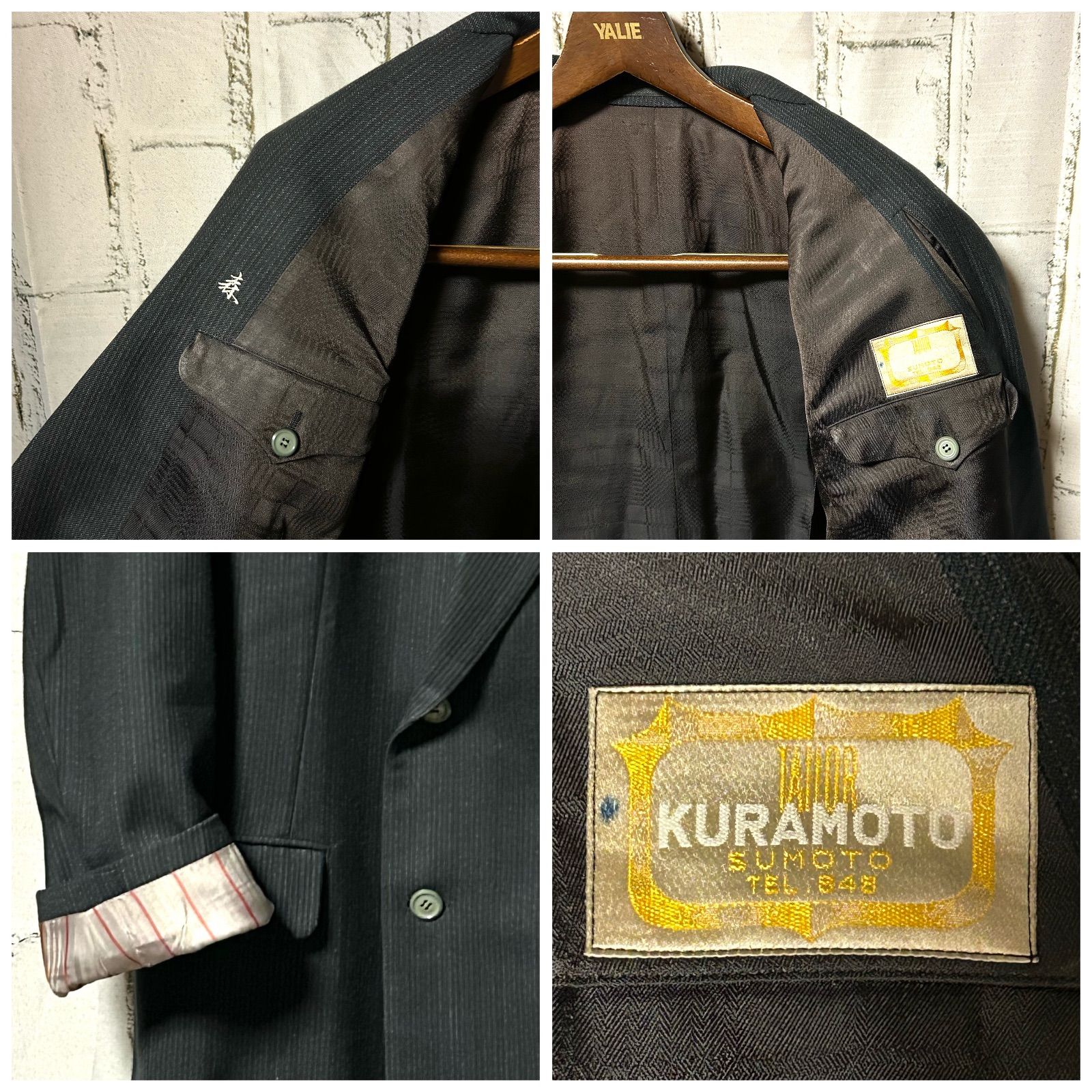 50 S~60 S ヴィンテージ セットアップ 2ピース ダブル スーツ ストライプ チャコールグレー L~XL相当 ジャケット スラックス 2タック ボタンフライ 春 秋 冬 フォーマル 冠婚葬祭 成人式 結婚式 菅田将暉 吉沢亮 横浜流星 Vintage