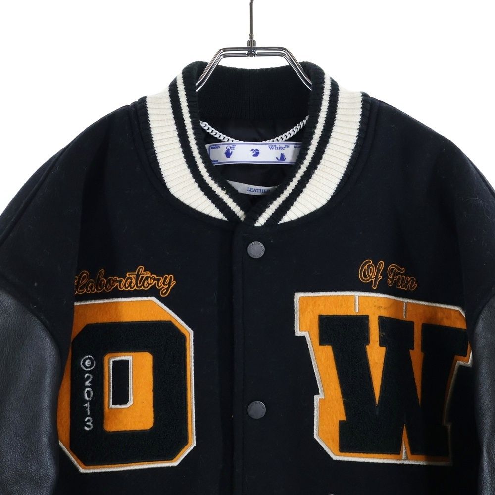 OFF-WHITE オフホワイト 21 AW Leather Varsity Jacket ロゴワッペン 袖レザー切り替え バーシティジャケット スタジャン ブルゾン ブラック