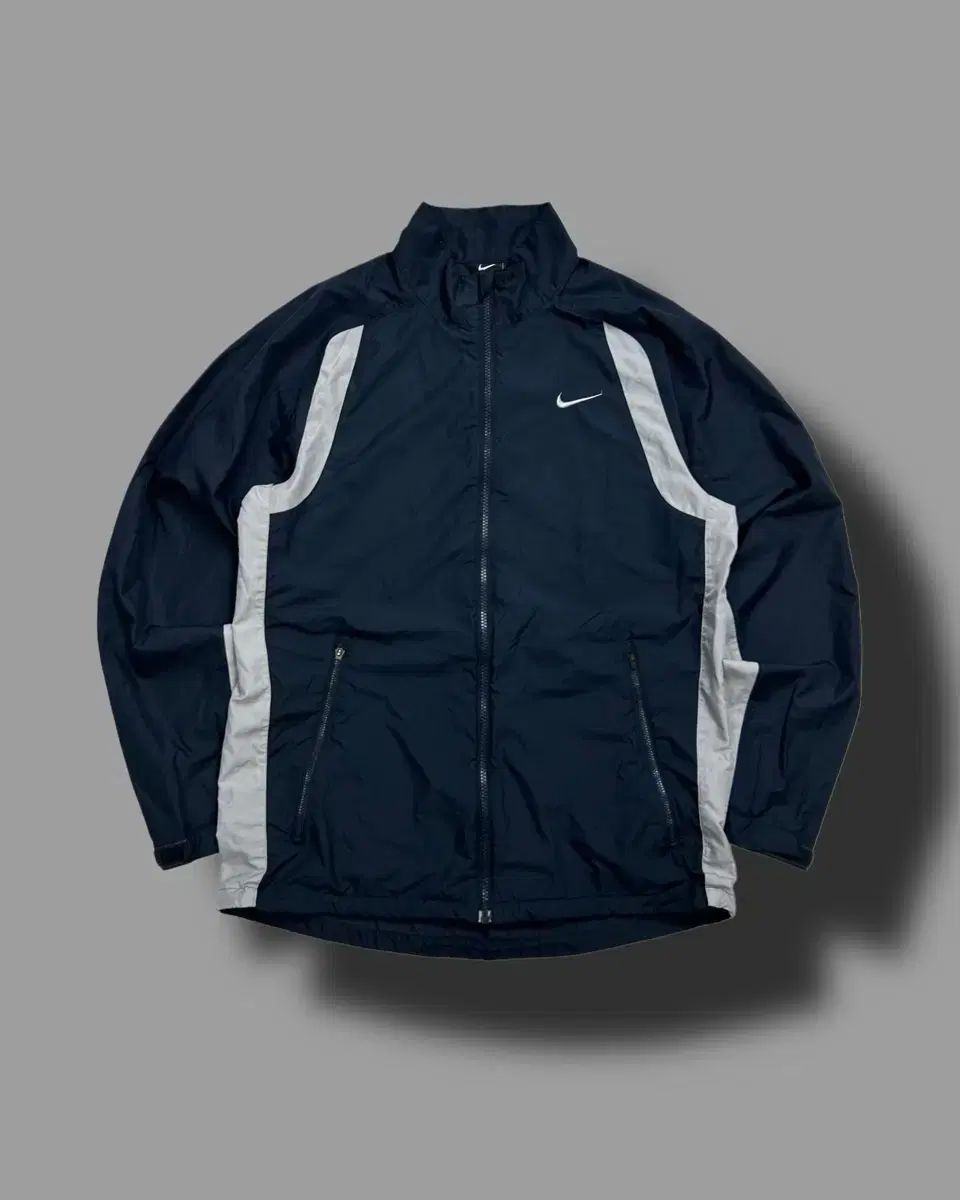 ネイビー バターンに白 バイカラーが引き立つ NIKE ウィンドブレーカーです。前面 スウッシュ ロゴが POINT のオールドスクール 商品で 裾 シャーリング 長さ 調節が 可能で 全体的に スタイリッシュな コンディション 維持中인 商品です。
