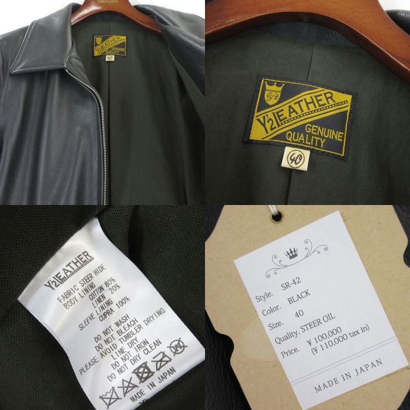 未使用 Y’2 LEATHER ワイツーレザー シングルライダース SR-42 ステアオイル レザージャケット 牛革 ブラック 黒 40