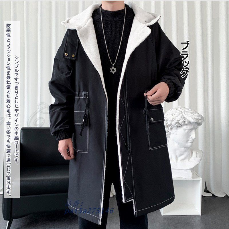 中綿コート ジャケット ロング丈 メンズ 裏ボア付き 暖かい ファッション 保温 縦長効果 デート 防寒 お出掛け かっこいい フード付き 防風 旅行 pai 5 a 275146