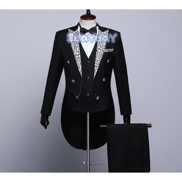 タキシード メンズスーツセット 燕尾服 男性 5点セット スリム フォーマル 結婚式 演奏会 司会