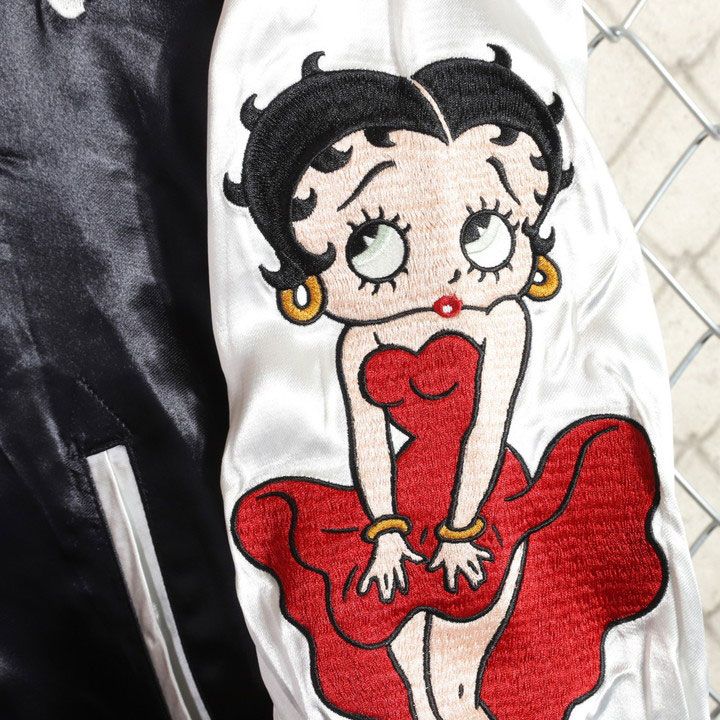 Betty Boop× WORLD レーヨンスカジャン MW 25 C 15-BL 100 マスターマインドワールド ベティブープ ボクシーフィット オーバーサイズ