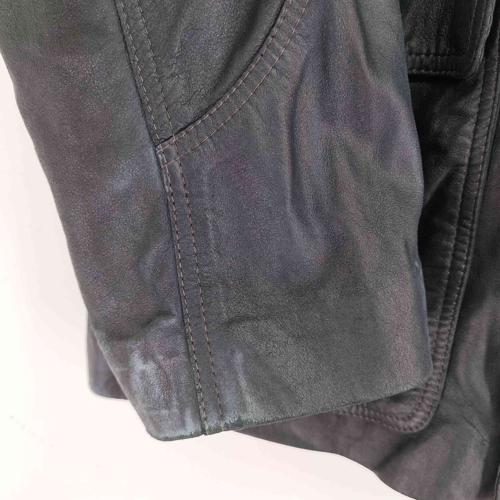 ユーズドフルギ 古着 NOTUREL 裏地ノヴァチェック 比翼デザインレザーブルゾン メンズ 表記無