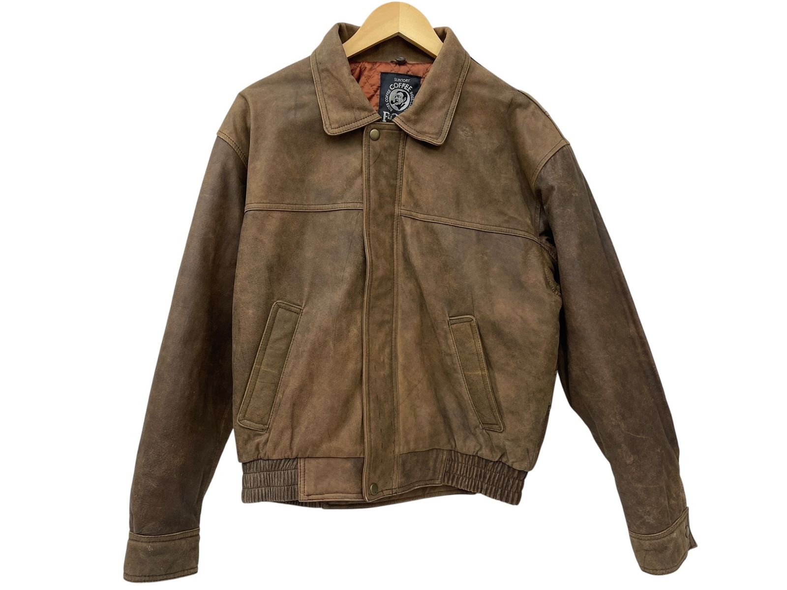 SUNTORY サントリー BOSS ボス レザーフライトジャケット 古着 バックロゴエンボス加工 牛革 2 WAY D-OS-6028 L ブラウン系 メンズ 049
