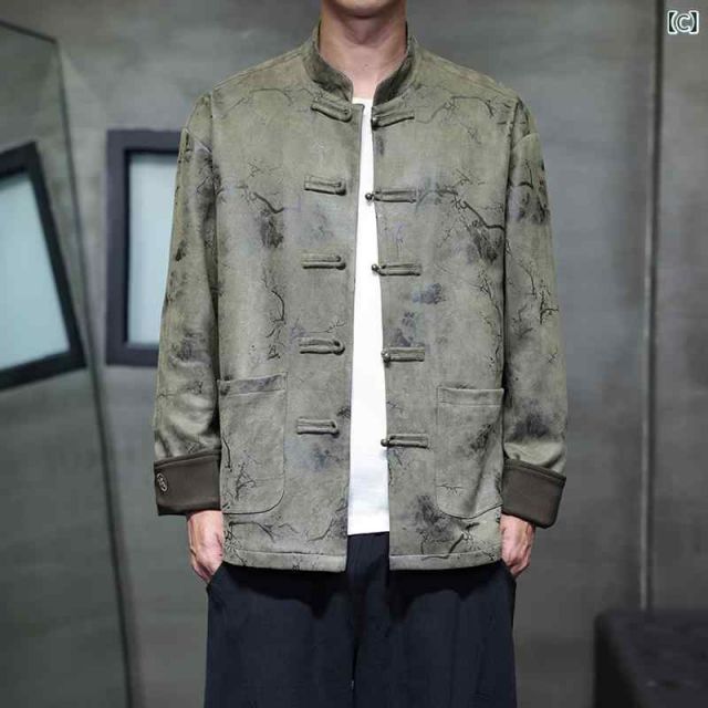 XL アジアンテイスト 衣装 メンズ ファッション 服 用 オシャレ シンプル 大人 かっこいい 大きいサイズ ストリート 紳士服 スエード ジャケット トップ プリント レトロ ボタン 唐装 韓服